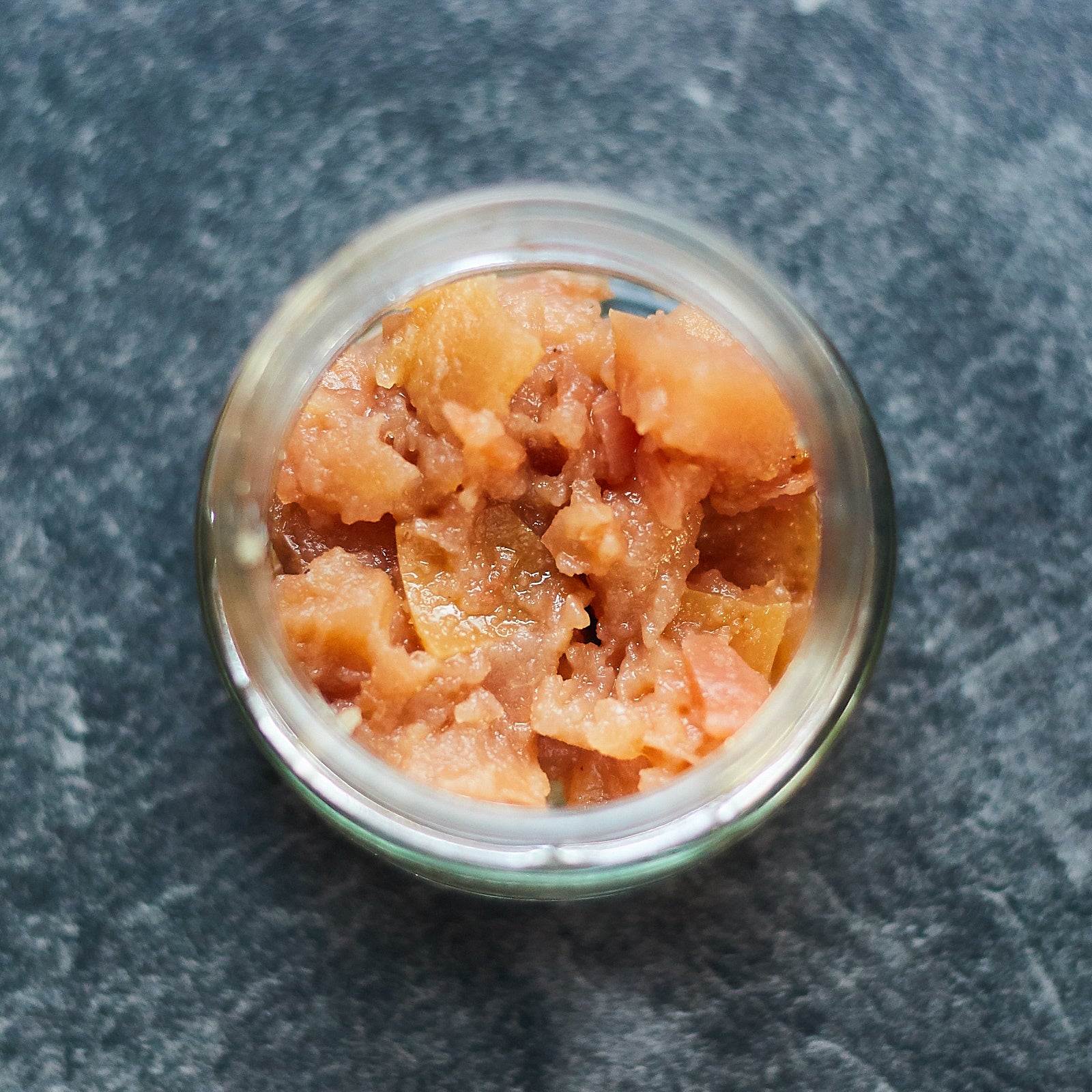 Für unser Streuobstwiesen-Chutney verarbeiten wir frische Äpfel direkt von unseren Streuobstwiesen. Die Kombination aus der Süße der Äpfel und der Würze der Zwiebeln macht dieses Apfel-Chutney zu einem harmonischen Begleiter für deine Vesper.